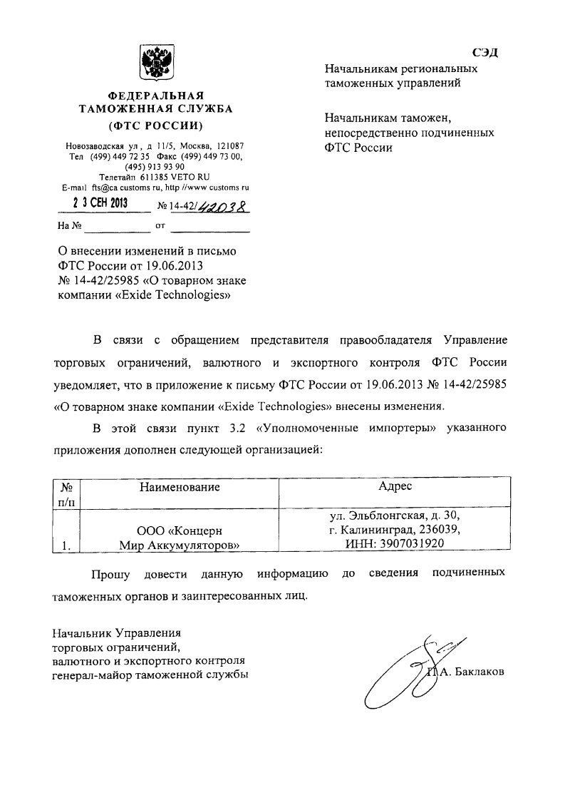 Наша компания является эксклюзивным представителем и уполномоченным импортером всемирно известного аккумуляторного гиганта Exide Technologies в Калининградской области и осуществляет оптовые поставки аккумуляторных батарей под брендами EXIDE, CENTRA, HAGEN, TUDOR и DETA напрямую с европейского распределительного центра корпорации EXIDE, после чего аккумуляторы реализуются через сеть магазинов "Мир аккумуляторов" и магазины наших партнеров.