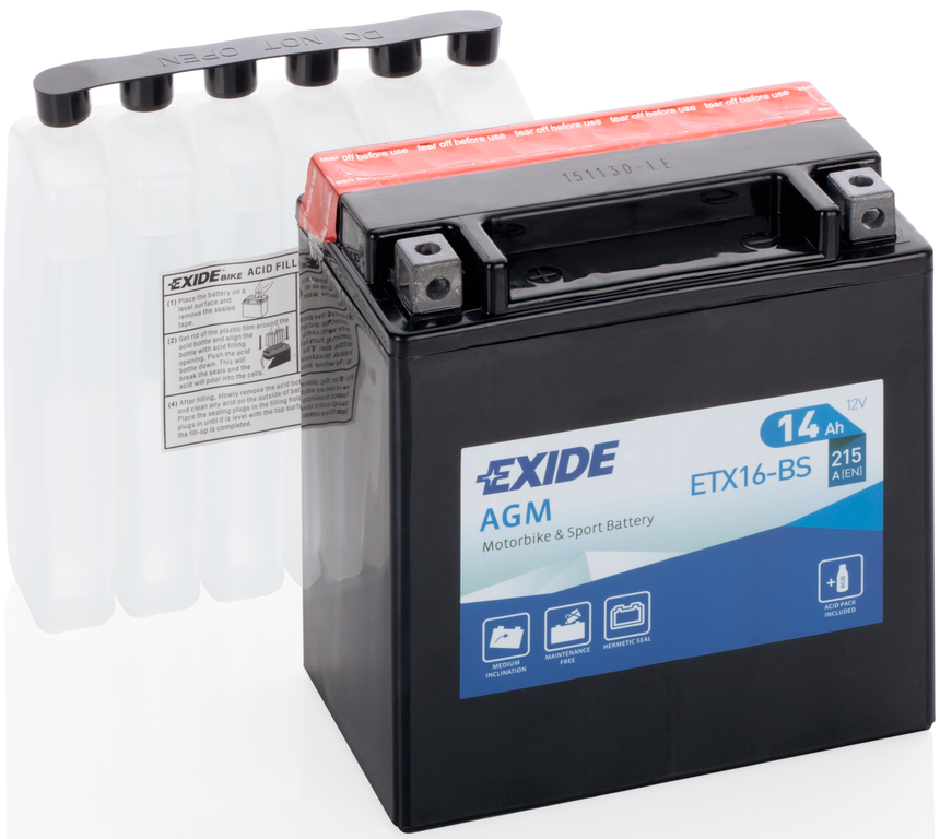 Аккумулятор Exide AGM предлагает впечатляющую надежность и срок службы, легко переносит холодные зимы и другие суровые условия. Аккумулятор полностью не требует обслуживания. Он произведен с использованием технологии AGM (Absorbent Glass Mat — абсорбирующий стекловолоконный сепаратор) и идеально подходит для большинства применений, включая скутеры высшего класса.
