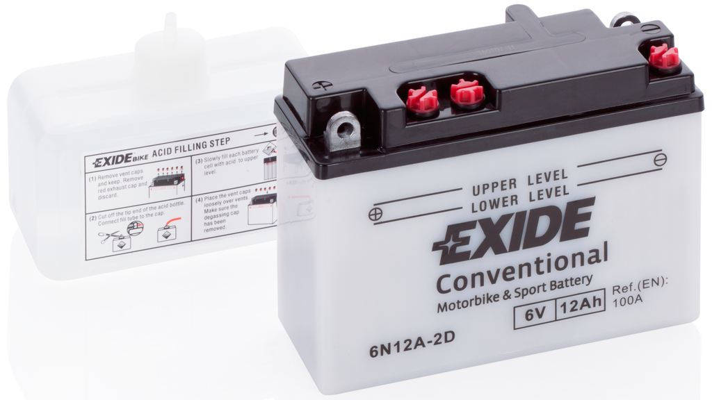 Стандартные акумуляторы EXIDE являются рациональным выбором для большинства моделей мотоциклов и мобильной техники. Эта серия имеет самый широкий модельный ряд и подходит как для небольших скутеров так и для крупной техники. Сухозаряженный аккумулятор предполагает предварительную заливку аккумулятора электролитом перед началом эксплуатации. Классическая конструкция дает возможность контролировать уровень электролита визуально и при этом обеспечивает достаточный запас мощности для мототехники в стандартной комплектации.