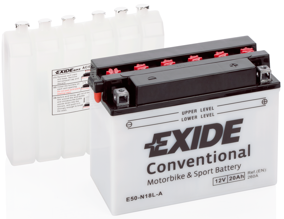 Стандартные акумуляторы EXIDE являются рациональным выбором для большинства моделей мотоциклов и мобильной техники. Эта серия имеет самый широкий модельный ряд и подходит как для небольших скутеров так и для крупной техники. Сухозаряженный аккумулятор предполагает предварительную заливку аккумулятора электролитом перед началом эксплуатации. Классическая конструкция дает возможность контролировать уровень электролита визуально и при этом обеспечивает достаточный запас мощности для мототехники в стандартной комплектации.