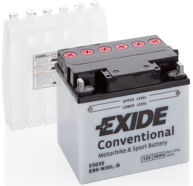 Стандартные акумуляторы EXIDE являются рациональным выбором для большинства моделей мотоциклов и мобильной техники. Эта серия имеет самый широкий модельный ряд и подходит как для небольших скутеров так и для крупной техники. Сухозаряженный аккумулятор предполагает предварительную заливку аккумулятора электролитом перед началом эксплуатации. Классическая конструкция дает возможность контролировать уровень электролита визуально и при этом обеспечивает достаточный запас мощности для мототехники в стандартной комплектации.